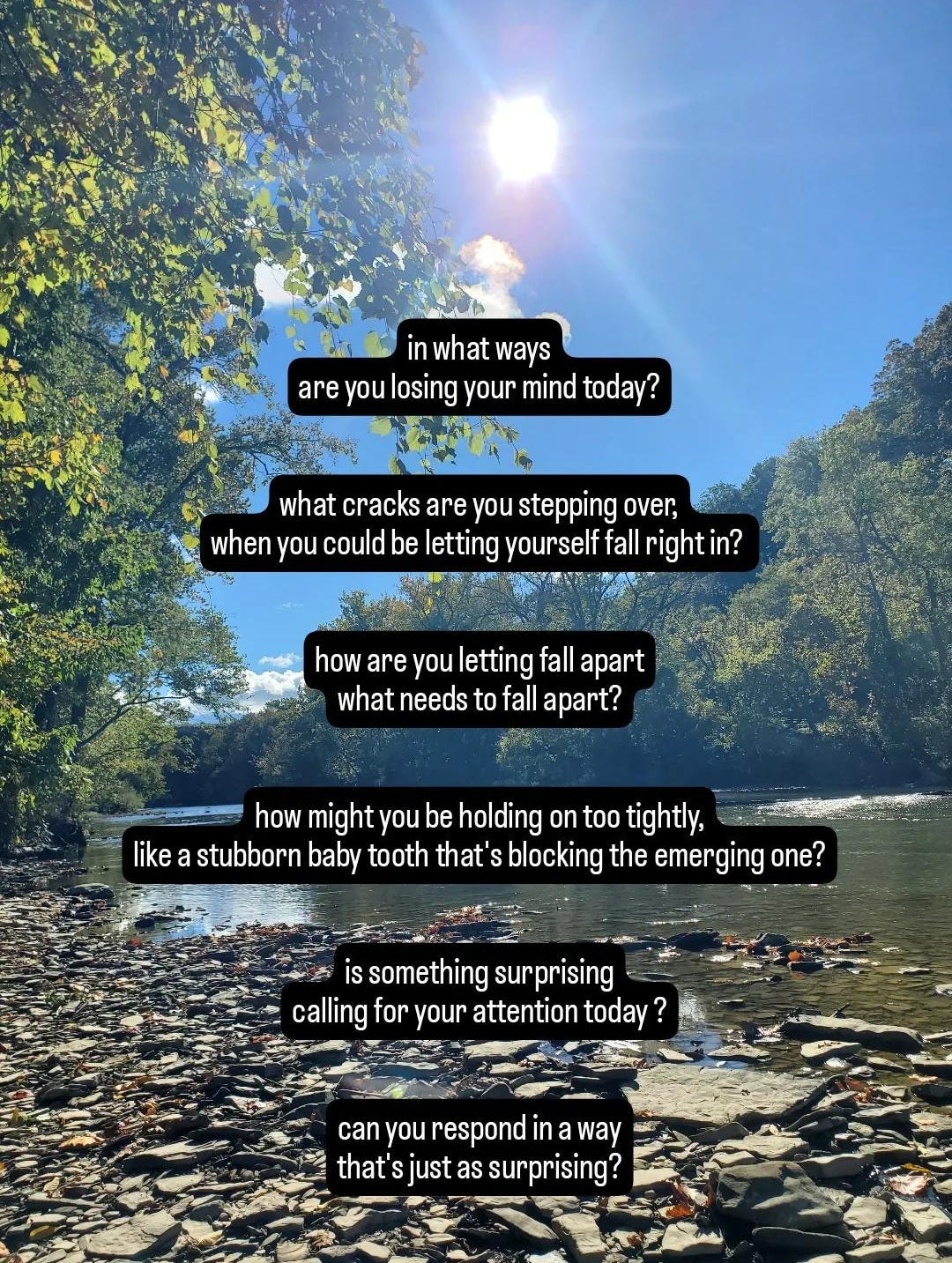 there is freedom here, too, which means there is ease here too—not ease like comfort & control but ease as refusing to fight the currents of our lives.